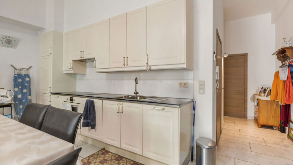 Gelegen te Moorsel: Graag bieden wij u dit gezellige appartement aan op de gelijkvloerse verdieping van een kleinschalig gebouw. Het appartement werd als volgt ingedeeld: inkomhal met toilet, ruime aangename leefruimte met open ingerichte keuken, berging, 2 slaapkamers en een badkamer. De living geeft onmiddellijk toegang tot een groot zonneterras en ommuurd tuintje/koertje). Uitzonderlijk aan dit appartement zijn de hoge plafonds die een fantastisch ruimtegevoel creëren. Bij het appartement behoren 2 private parkeerplaatsen. GEEN gemeenschappelijke kosten ! Voor meer info of bezoek, contacteer Sophie 0496/71.50.59